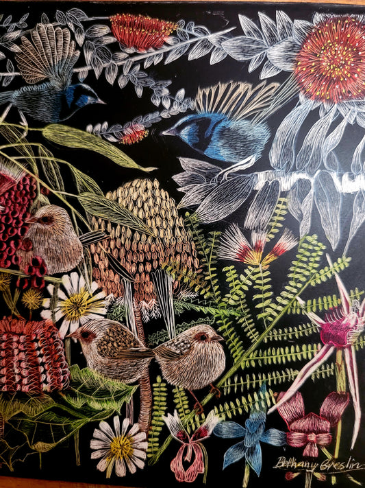 Original Scratchboard, ' Wildflowers of Southern Western Australia'