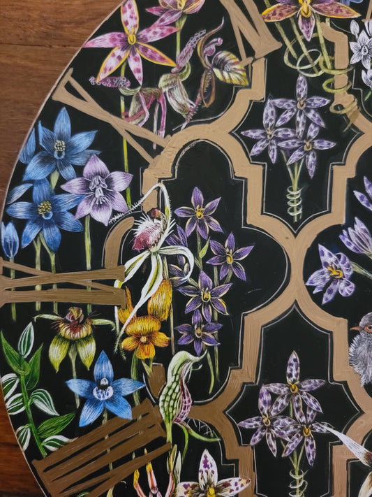 Original Scratchboard clock 'Orchids of Western Australia'